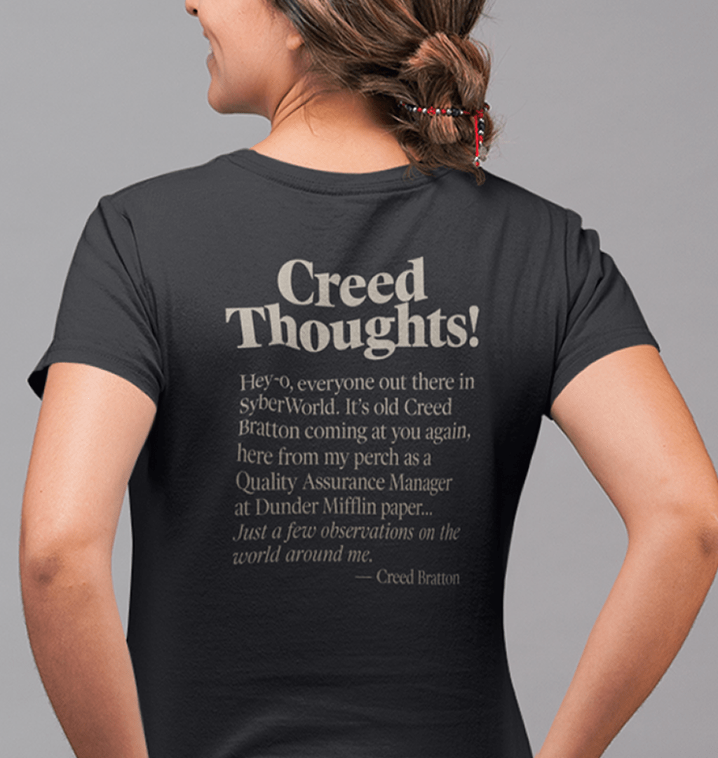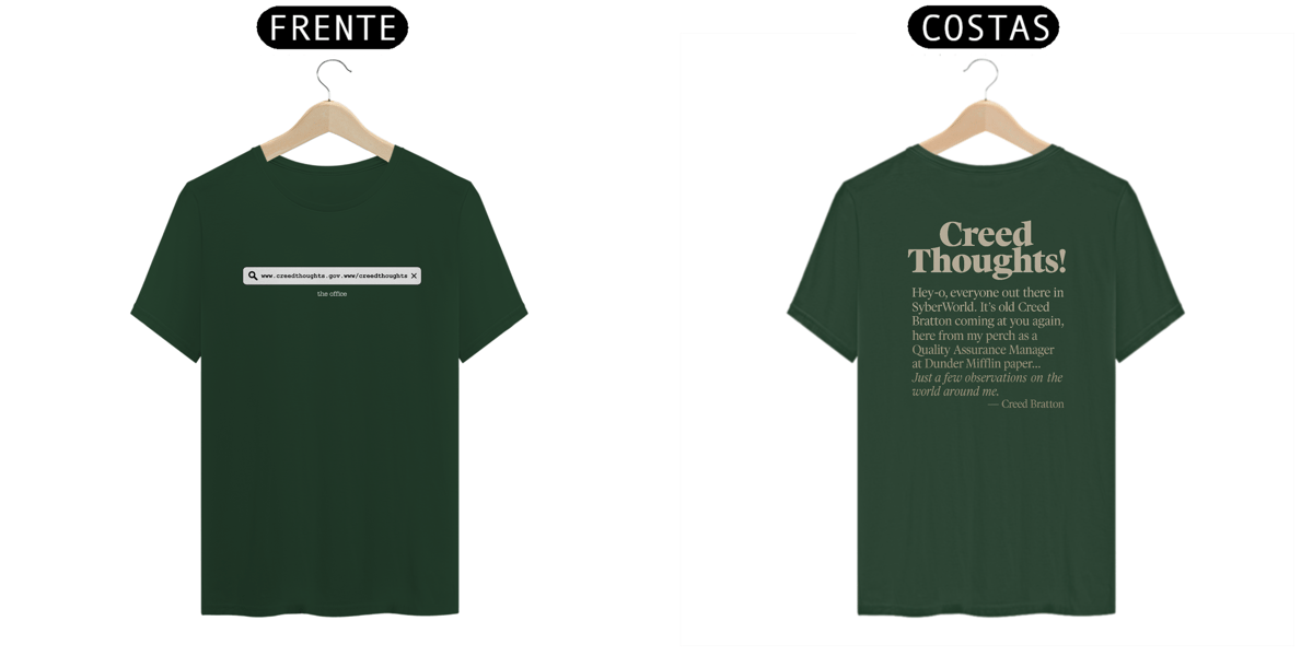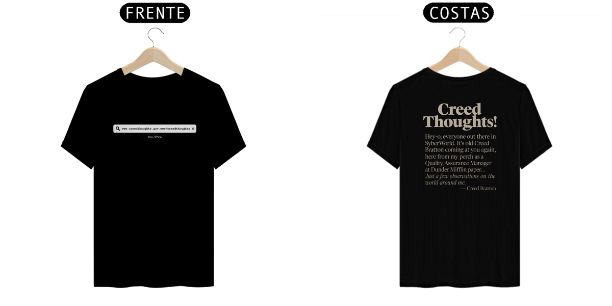 A camiseta do Creed é ideal para quem aprecia o humor mais nonsense de The Office, referências internas e piadas que não precisam ser explicadas para outros fãs.